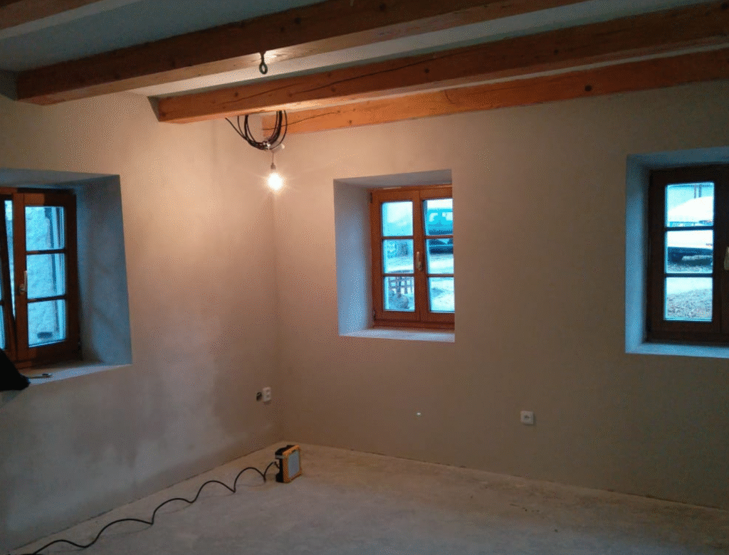 Klimastěna zde čelila kritické výzvě – vlhkosti zdiva sahající až do výšky 1,5 metru. Náš systém stěny nejen trvale vysušil, ale proměnil historický objekt v moderní, energeticky úspornou budovu.