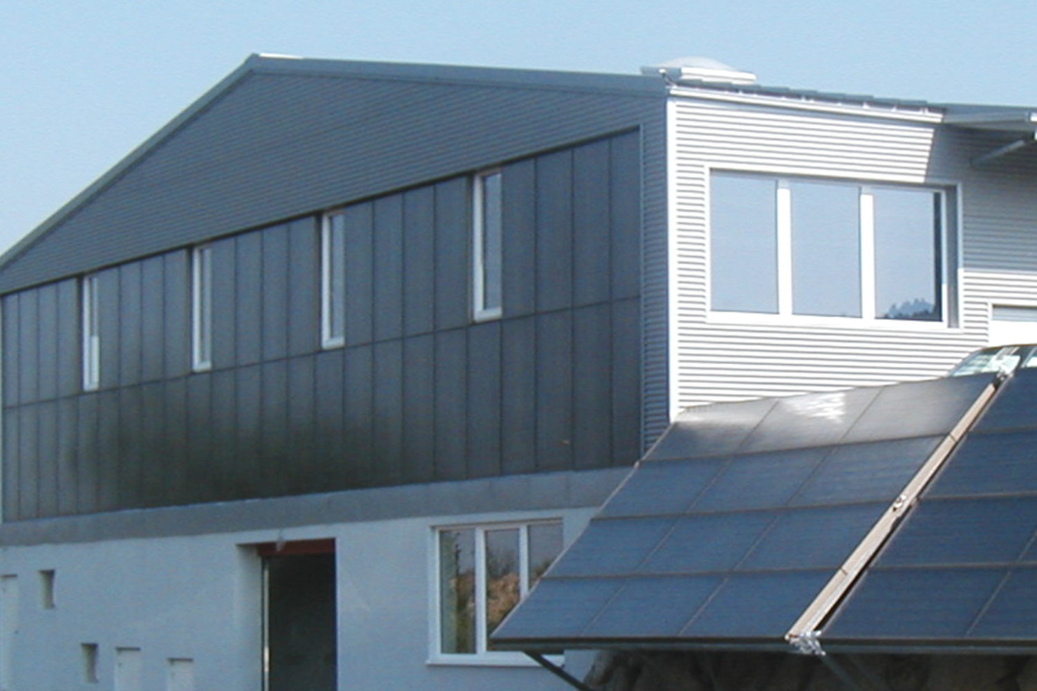 Navrhli a realizovali jsme komplexní řešení zahrnující velkoobjemovou akumulační nádrž SUNSAVE, tepelné čerpadlo a solární kolektory pro maximální využití obnovitelných zdrojů energie. Naše klimastěna topí a chladí bez vzdušných proudů. Nestandardní částí realizace byla instalace klimastěny zvenčí jako další forma zateplení.